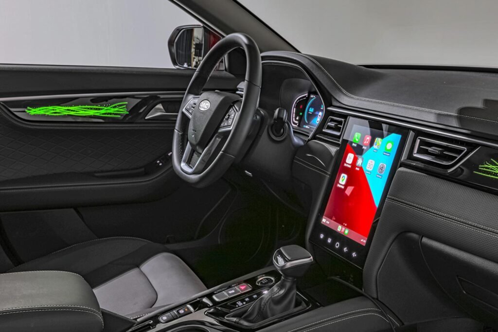 Its coupe-like silhouette, LED headlights, chrome accents, and dynamic rear design give it a premium appearance that rivals higher-priced models. Inside, the cabin is modern and spacious, featuring a wide digital instrument cluster, a large infotainment touchscreen with Apple CarPlay and Android Auto, leather-style upholstery, ambient lighting, rear A/C vents, and a panoramic sunroof in higher trims.